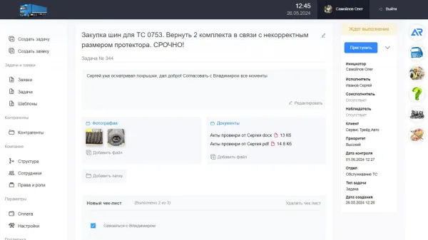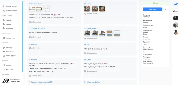 Каждая задача в нашей системе сопровождается детализированной карточкой, которая служит центральным элементом управления и координации работы. Описание задачи, чек-листы, исполнитель, соисполнитель, инициатор, наблюдатель, клиент, приоритет и тип задачи.